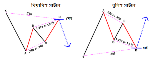যাই হোক, এই প্যাটার্নের মধ্যে বুলিশ এবং বিয়ারিশ ABCD প্যাটার্ন আছে, কিন্তু তার আগে একটি X পয়েন্ট আছে যা D পয়েন্টকে ছাড়িয়ে গেছে। পারফেক্ট “গার্টলে” প্যাটার্নের নিম্নোক্ত বৈশিষ্ট্য থাকেঃ