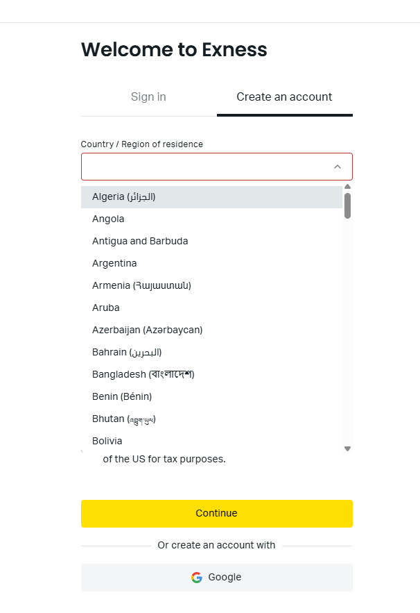 এখানে কান্ট্রি সিলেক্ট করুন। নিচের ছবি দেখুন। কান্ট্রির ঘরে ক্লিক করলে নিচের ছবির মতো অনেক দেশ দেখাবে সেখান থেকে আপনার কান্ট্রে সিলেক্ট করুন। আপনার ডকুমেন্টে যে দেশ থাকবে সেটা সিলেক্ট করবেন।