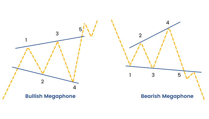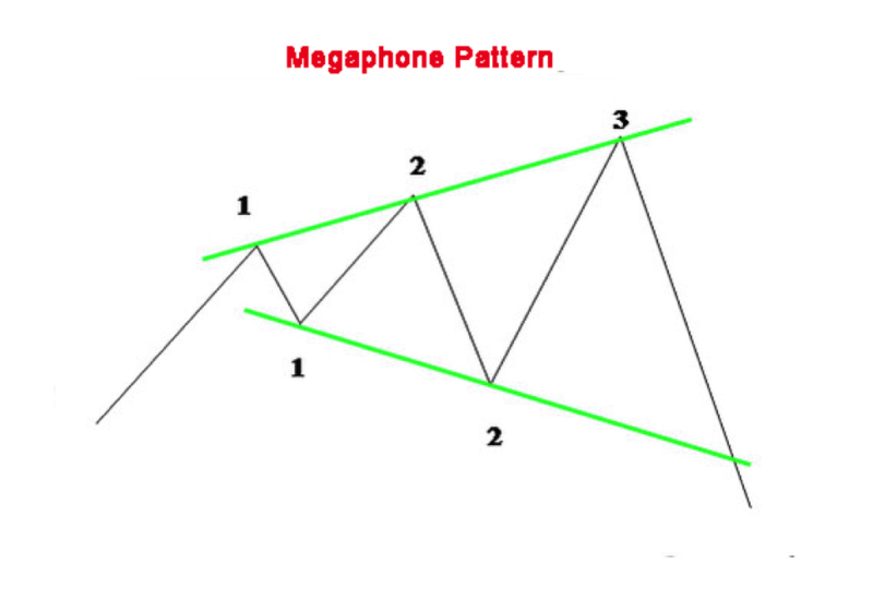 মেগাফোন প্যাটার্নটি মূলত একটি খোলা ত্রিভুজাকৃতি প্যাটার্ন যা সময়ের সাথে সাথে প্রাইস রেঞ্জের বিস্তার নির্দেশ করে। এই প্যাটার্নটি দুইটি প্রশস্ত বিকল্প টোপযুক্ত ট্রেন্ড লাইনের মাধ্যমে গঠিত হয়; একটি ঊর্ধ্বমুখী ট্রেন্ড লাইন এবং একটি নিম্নমুখী ট্রেন্ড লাইন। একে বর্ধিত ত্রিভুজও বলা হয়।