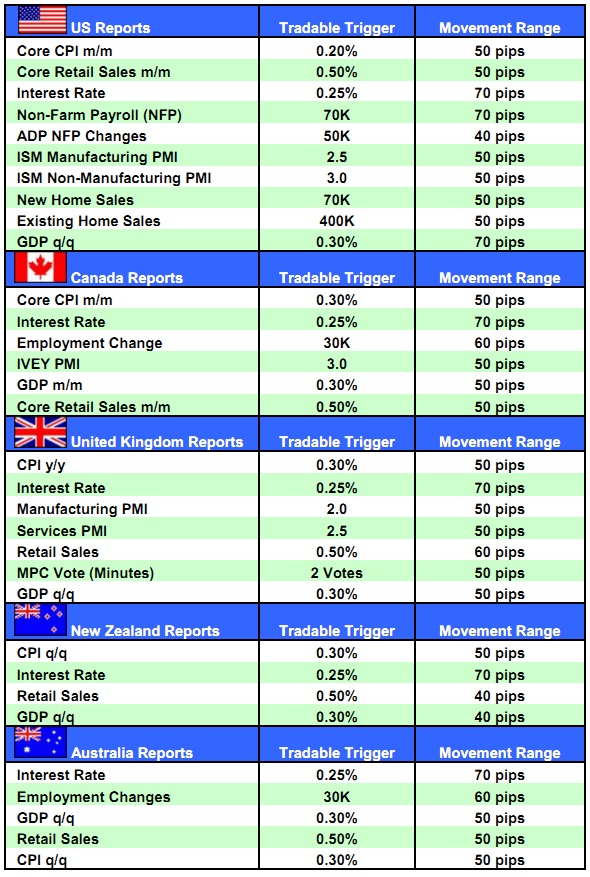 নিচের ছবিতে দেখুন কোন দেশের কোন কোন নিউজে কত পিপ মুভমেন্ট হতে পারে এবং কত টুকু চেঞ্জে নিউজ ফিগার আসলে সেটা ট্রেড করা যায়।