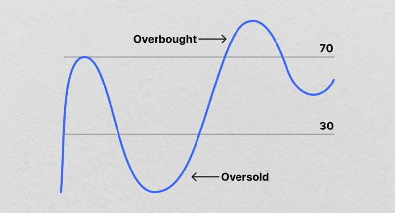 - ওভারসোল্ড (Oversold): RSI মান ৩০-এর নিচে নেমে গেলে এটি বুঝায় যে অ্যাসেটটি অত্যধিক বিক্রি হয়েছে এবং প্রাইস রিবাউন্ডের সম্ভাবনা রয়েছে।