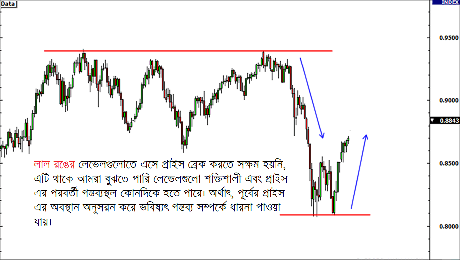 যেমন, যদি এমন কোনও প্রাইস লেভেল যেটি মেজর সাপোর্ট কিংবা রেসিস্টেন্স লেভেল ছিল পূর্ববর্তী সময়ে, এই প্রাইস লেভেলে এসে ট্রেডাররা তীক্ষ্ণ দৃষ্টি রাখেন এবং দেখেন, পূর্বের এই সাপোর্ট-রেসিস্টেন্স লেভেলটিকে প্রাইস বর্তমানে ব্রেক করতে সক্ষম হচ্ছে কিনা।