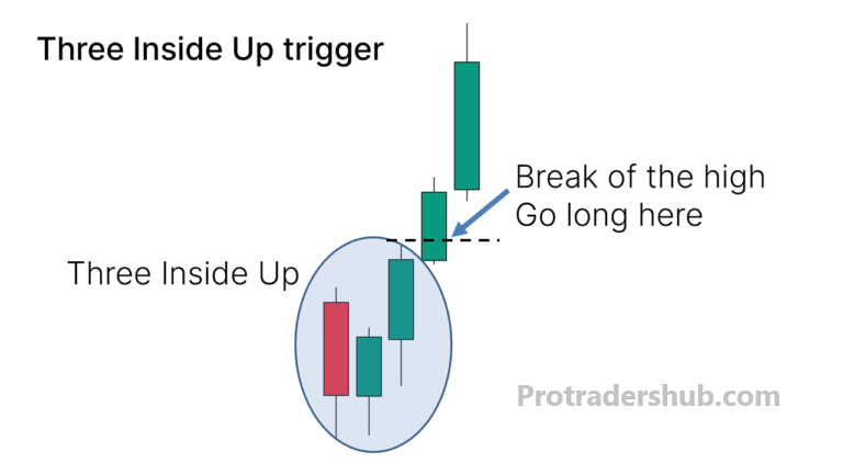 - থ্রী ইনসাইড আপ একটি তিন-ক্যান্ডেল প্যাটার্ন।