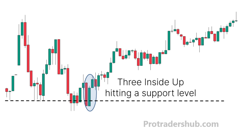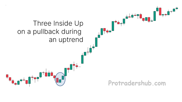 থ্রী ইনসাইড আপ প্যাটার্ন সাধারণত বাজারে বুলিশ প্রবণতার শুরুর সংকেত দেয়। এটি একটি শক্তিশালী প্রাইস রিভার্সাল প্যাটার্ন হিসাবে বিবেচিত হয় এবং ট্রেডারদের মধ্যে জনপ্রিয়।