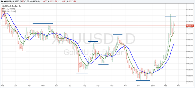 ২. এন্ট্রি পয়েন্ট নির্ধারণ করা: ট্রেন্ড নির্ধারণের পরে, ট্রেডাররা এন্ট্রি পয়েন্ট নির্ধারণ করে। এটি সাধারণত মুভিং এভারেজ ক্রসওভার বা ব্রেকআউট লেভেলে হয়।
